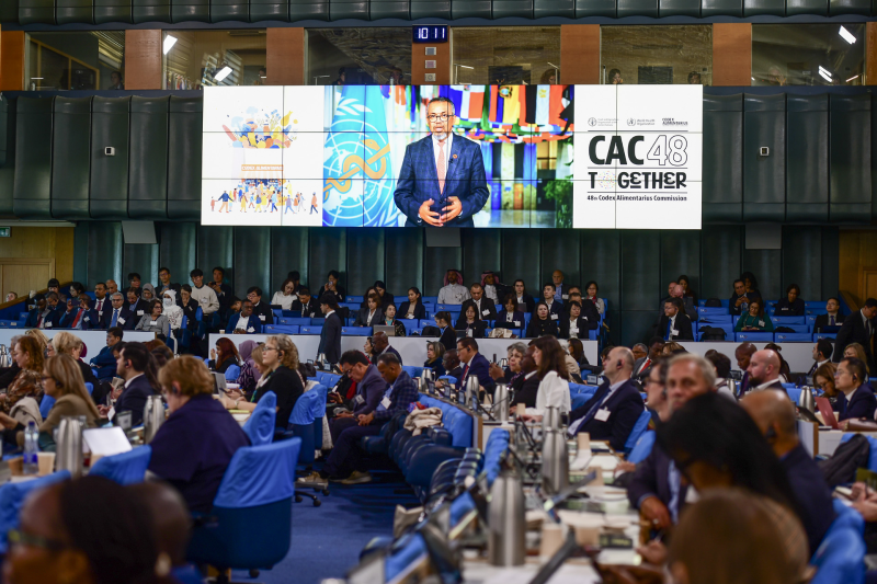国际食品法典委员会(CAC)第48届大会于2025年11月10日—14日在意大利罗马召开。来自120多个国家、1个成员组织(欧洲联盟)和相关国际组织近500名代表参加了会议。联合国粮食及农业组织(FAO)总干事屈冬玉博士出席开幕式并致辞,世界卫生组织(WHO)总干事谭德塞博士以视频方式致辞。农业农村部、国家卫生健康委、海关总署、香港食物环境卫生署食物安全中心、深圳市标准技术研究院等相关部门19名代表作为中国代表团成员参会,农业农村部农产品质量安全监管司孙法军副司长、一级巡视员担任中国代表团团长,率团全程深度参与会议及官方活动。