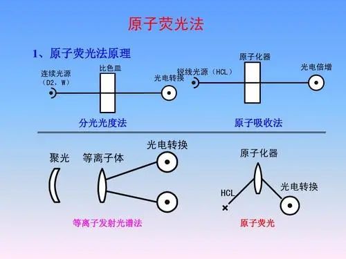待测元素的溶液与硼氢化钠(钾)混合,在酸性条件下,砷、硒、锑、铋、锡、碲、铅、锗等可生成氢化物气体(如硒化氢等),汞可生成气态原子态汞;镉、锌可生成气态组分,从溶液中逸出,通过与氩气、氢气混合后进入到原子化器中(并被点燃),气体组分在高温下分解并转化为基态的原子蒸汽,通过该元素的空心阴极灯产生的共振线激发,基态原子跃迁到高能态,它再重新返回到低能态,多余的能量便以光的形式(也就是原子荧光)释放出来。根据原子荧光强度与被测物浓度成正比可测得试样中待测元素的含量。