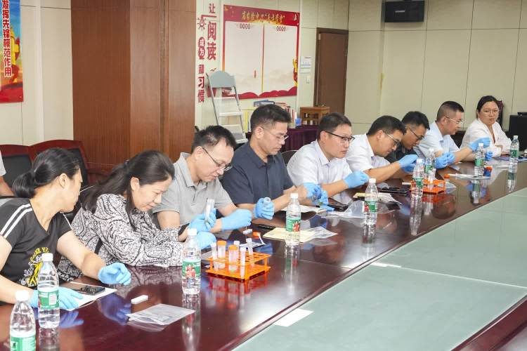 活动中,中心相关同志介绍了江苏农产品质量安全风险监测状况,剖析了农产品质量安全形势,并提出了农产品消费建议。检测人员带领学员参观实验室现场,了解样品从前处理制备到仪器检测的全过程,同时开展胶体金速测演示实验,并带领大家使用胶体金速测卡检测豇豆中的灭蝇胺残留。厅质监处的同志就合格证使用及农产品追溯平台进行讲解。