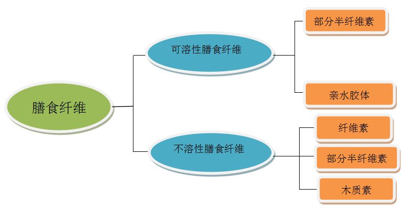 根据目前的分析方法测出的膳食纤维的组分,大致分为以下几类(见图1):