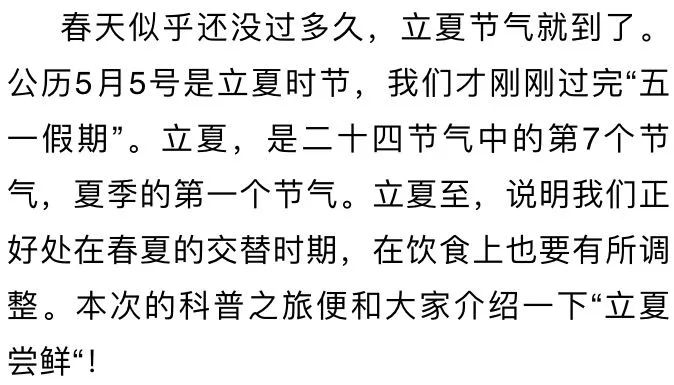 “吃出健康——农产品与24节气”之立夏尝鲜