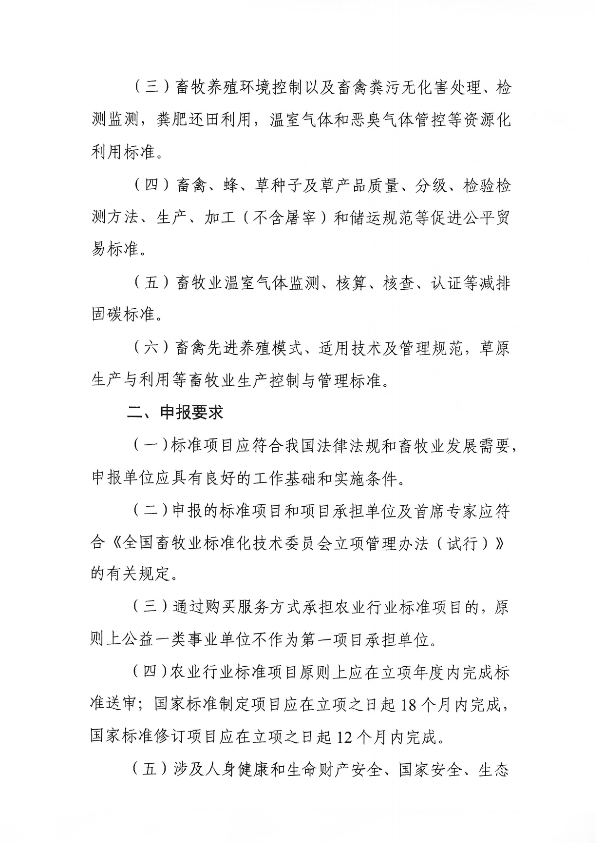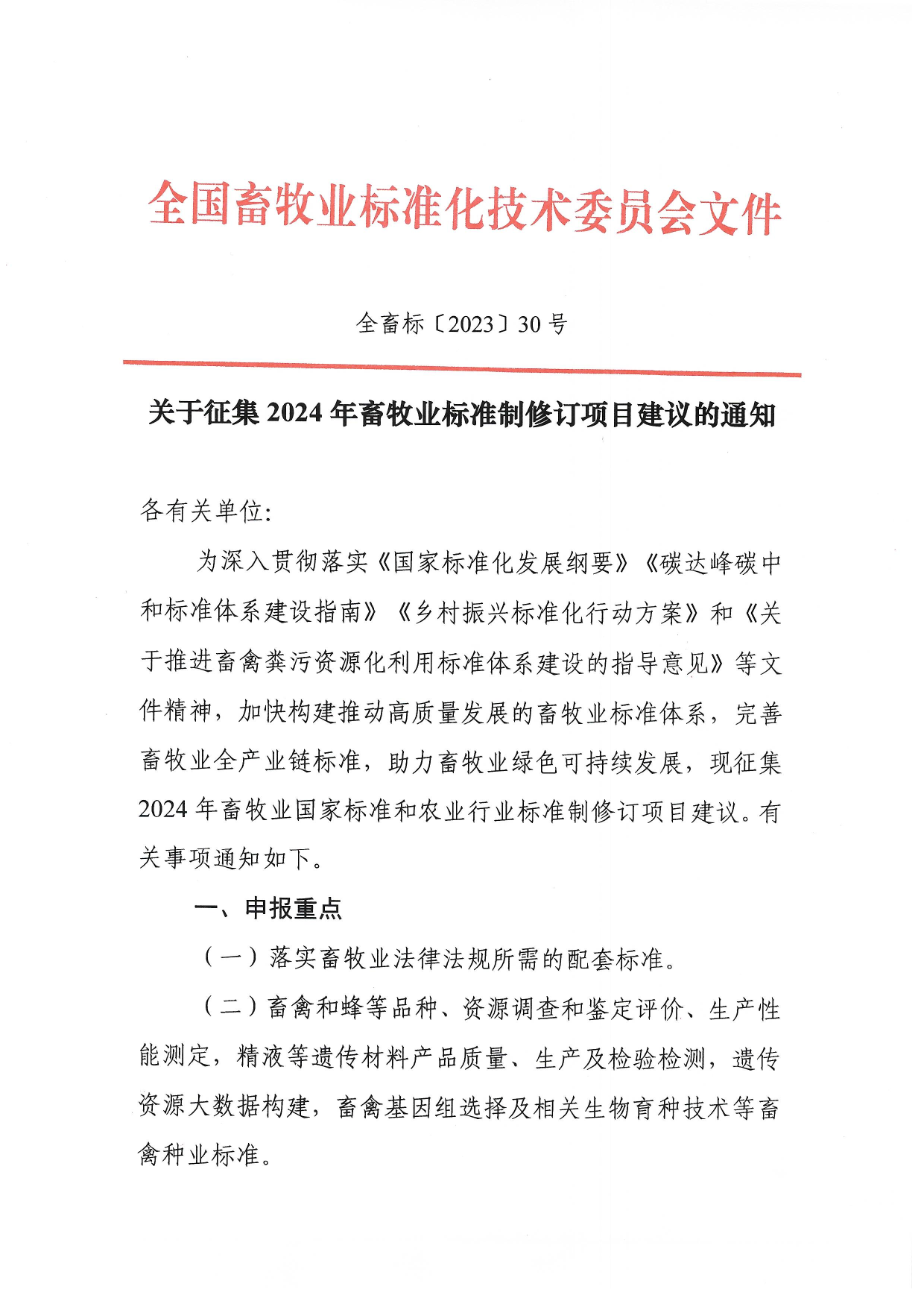 关于征集2024年畜牧业标准制修订项目立项建议的通知