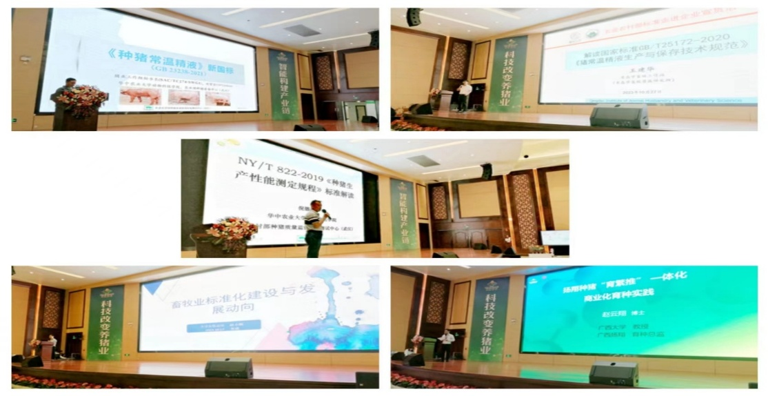 在专题讲座环节,全国畜牧总站赵小丽正高级畜牧师,华中农业大学倪德斌高级畜牧师、刘望宏高级畜牧师,青岛市畜牧兽医研究所王建华正高级畜牧师,广西大学教授、扬翔股份育种研究中心总监赵云翔博士等专家就畜牧业标准化建设、扬翔种猪育繁推一体的商业化育种技术体系实践、强制性国家标准《种猪常温精液》及其配套的推荐性标准《猪常温精液生产与保存技术规范》《种猪生产性能测定规程》等内容进行理论授课。